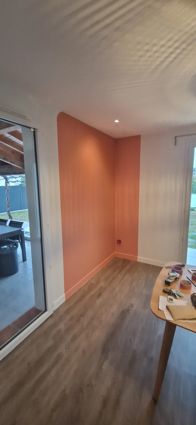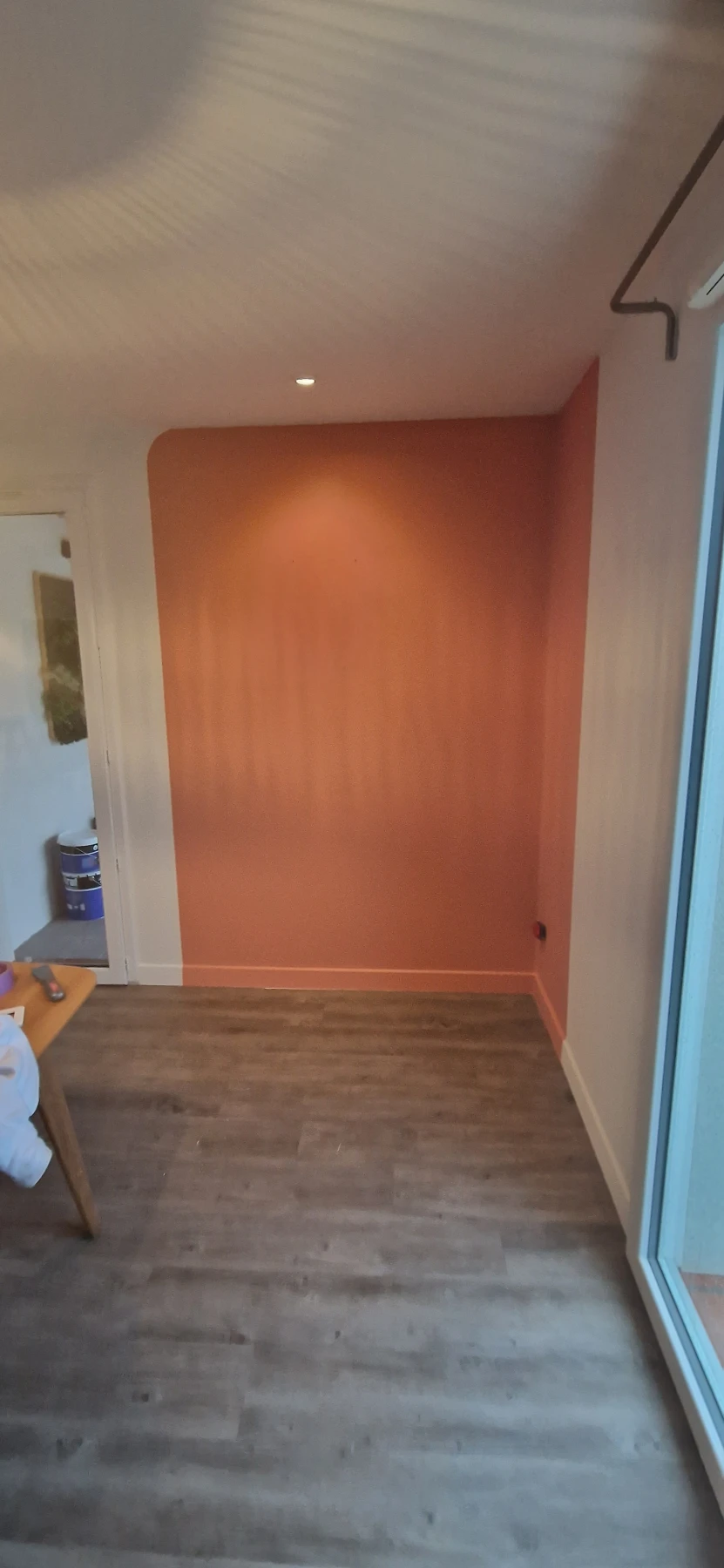 Dans cette pièce, j’ai réalisé une peinture complète avec le choix d’une teinte terracotta moderne, idéale pour créer une ambiance chaleureuse et tendance.